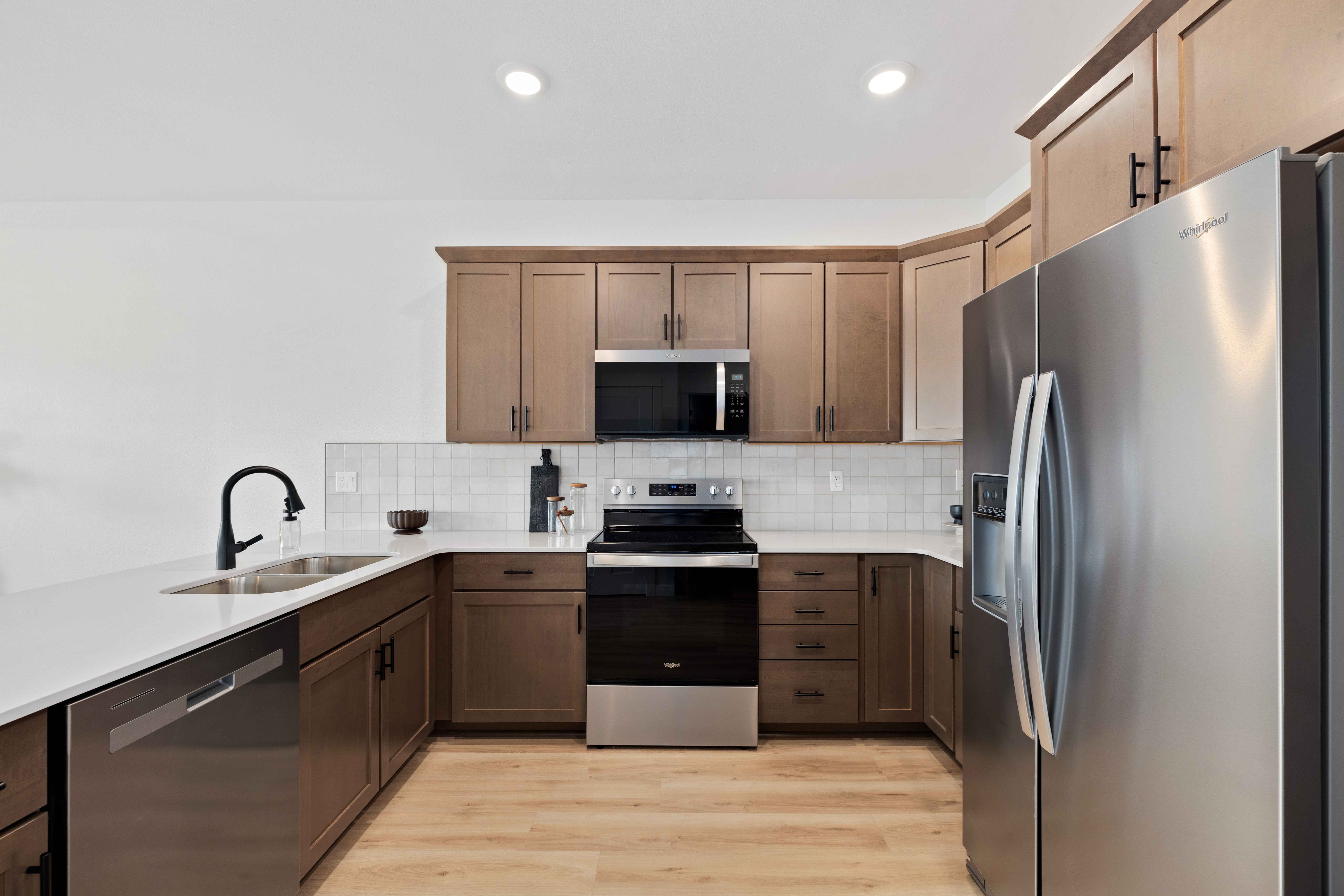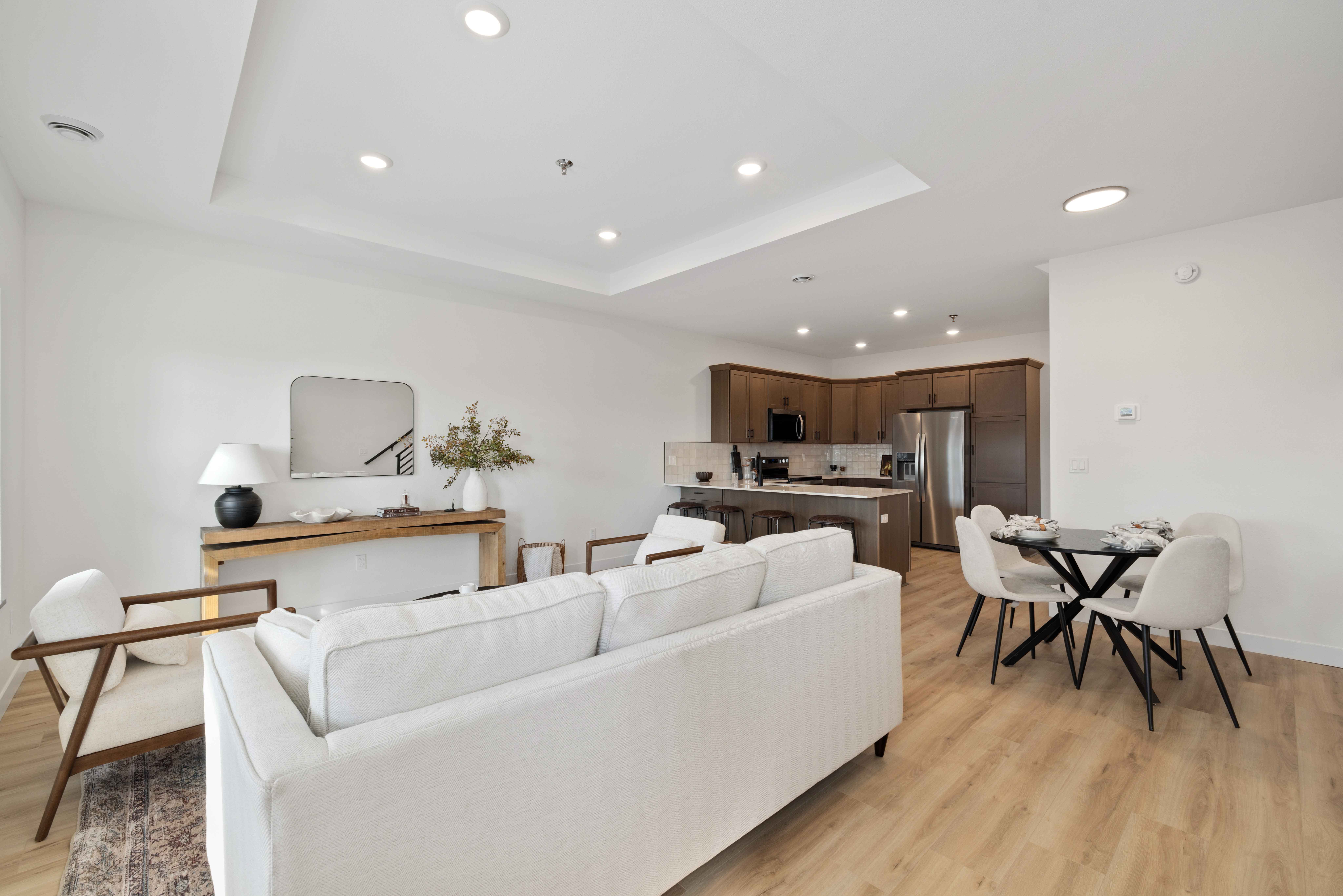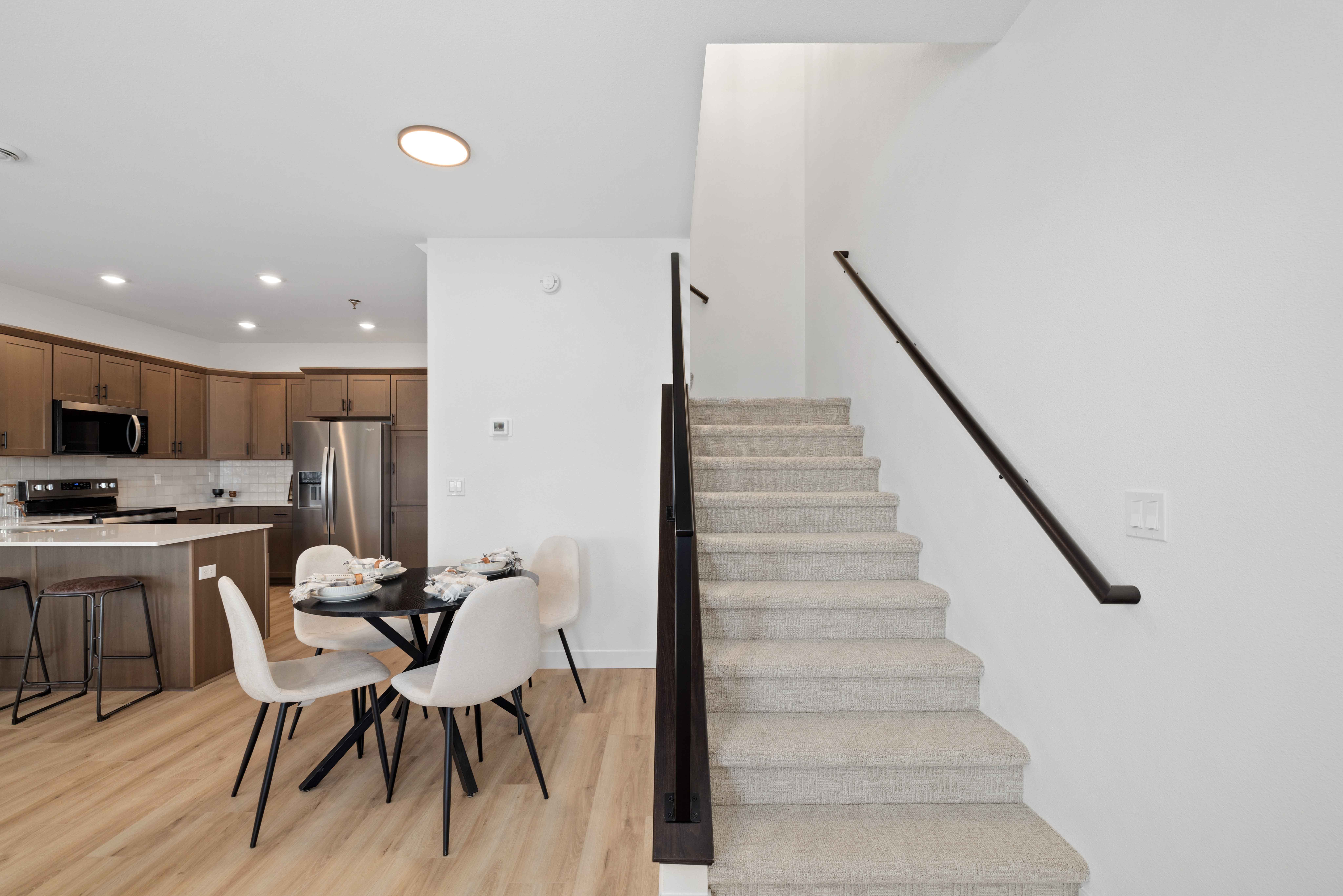 This beautifully designed new construction townhome offers modern living with premium upgrades. The main floor features an open-concept layout with a kitchen and dining area, complete with quartz countertops, custom cabinetry, and stainless steel appliances. Upstairs,you'll find 3-bedrooms, including a private primary suite with a double vanity and tile shower, a full bath, and a versatile loft space ideal for a home office or additional lounge area.