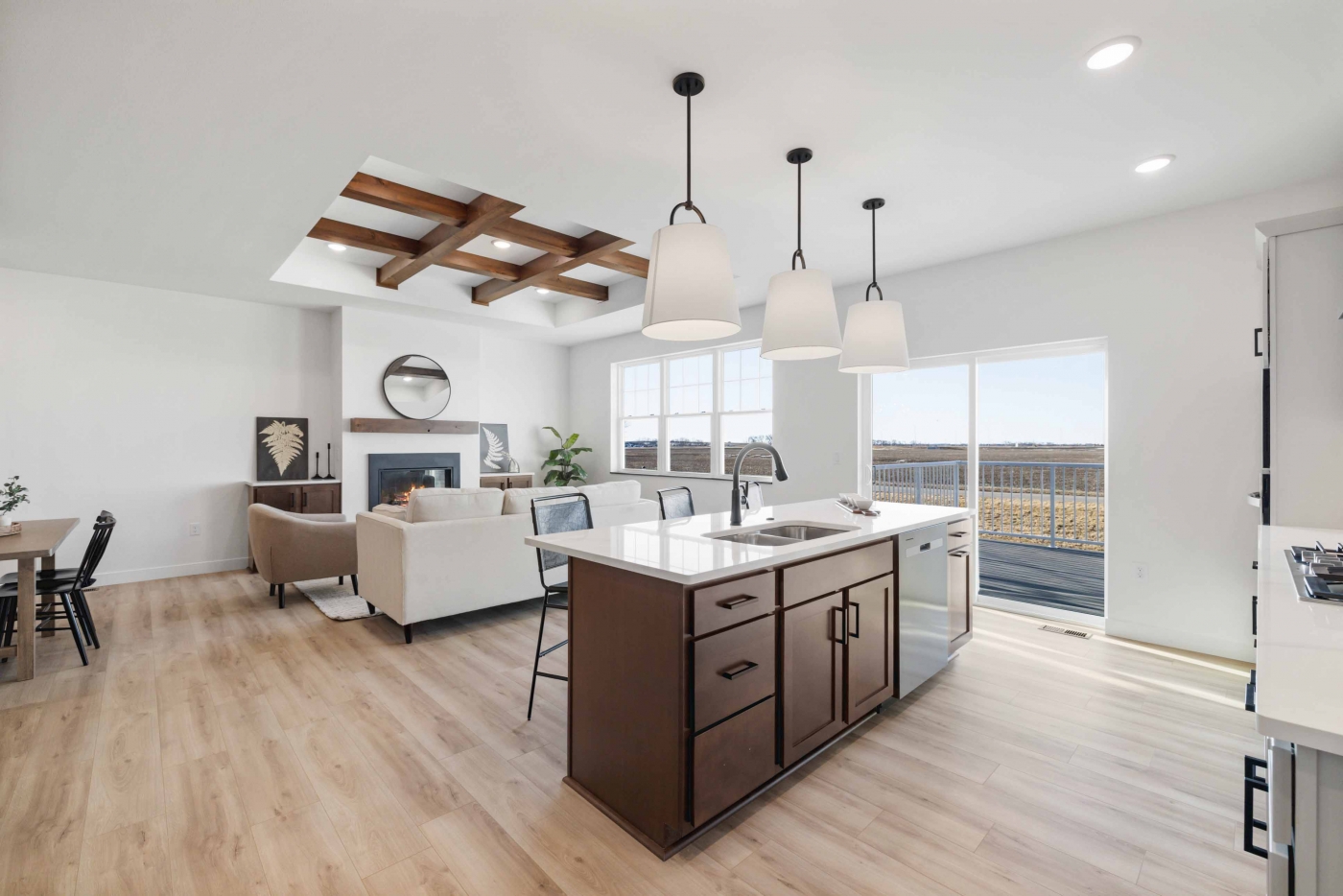 Craftsman-style home with custom finishes throughout! Enjoy a bright, open layout with a gourmet kitchen, quartz countertops, and stainless-steel appliances. The great room features a custom-beam ceiling and cozy fireplace. Main level includes a luxurious primary suite and another bedroom. The finished lower level offers 2-bedrooms, a full bath, spacious family room, and built-in bar. Finished 2-car garage. HOA covers lawn care, snow removal, and neighborhood amenities for easy living.